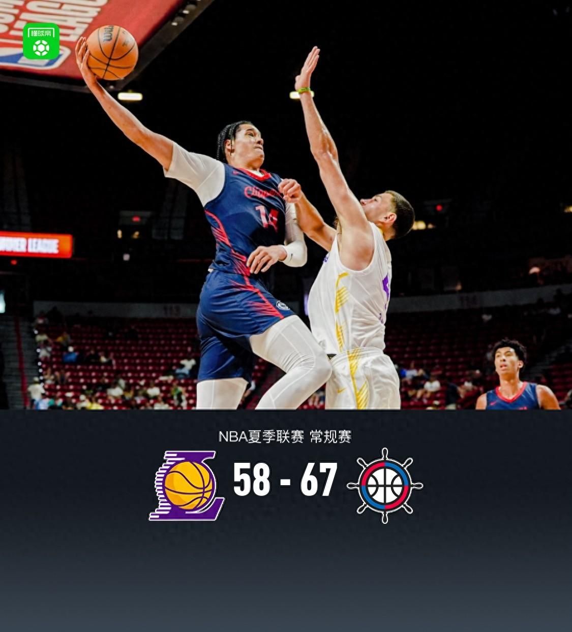 北京時間7月15日NBA夏季聯賽 常規賽,洛杉磯湖人對陣洛杉磯快船。半場湖人31-32快船,最終湖人58-67快船。