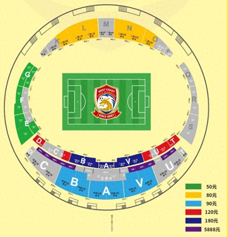 50元(北看臺G區、二層F上單、上雙、二層E區上單、上雙、E區下雙區域)
