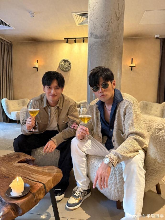 7月17日, 周冠宇更新社媒曬與周杰倫、昆凌合照,並配文:雙週遊記!愉快充實的兩天~(推薦大家也嚐嚐我們手裏的氣泡茶,很贊)