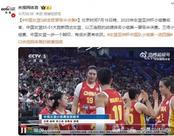 7月16日,在2025國際籃聯女籃亞洲盃小組賽第三輪對決中,中國女籃以85-51大比分戰勝新西蘭女籃。
