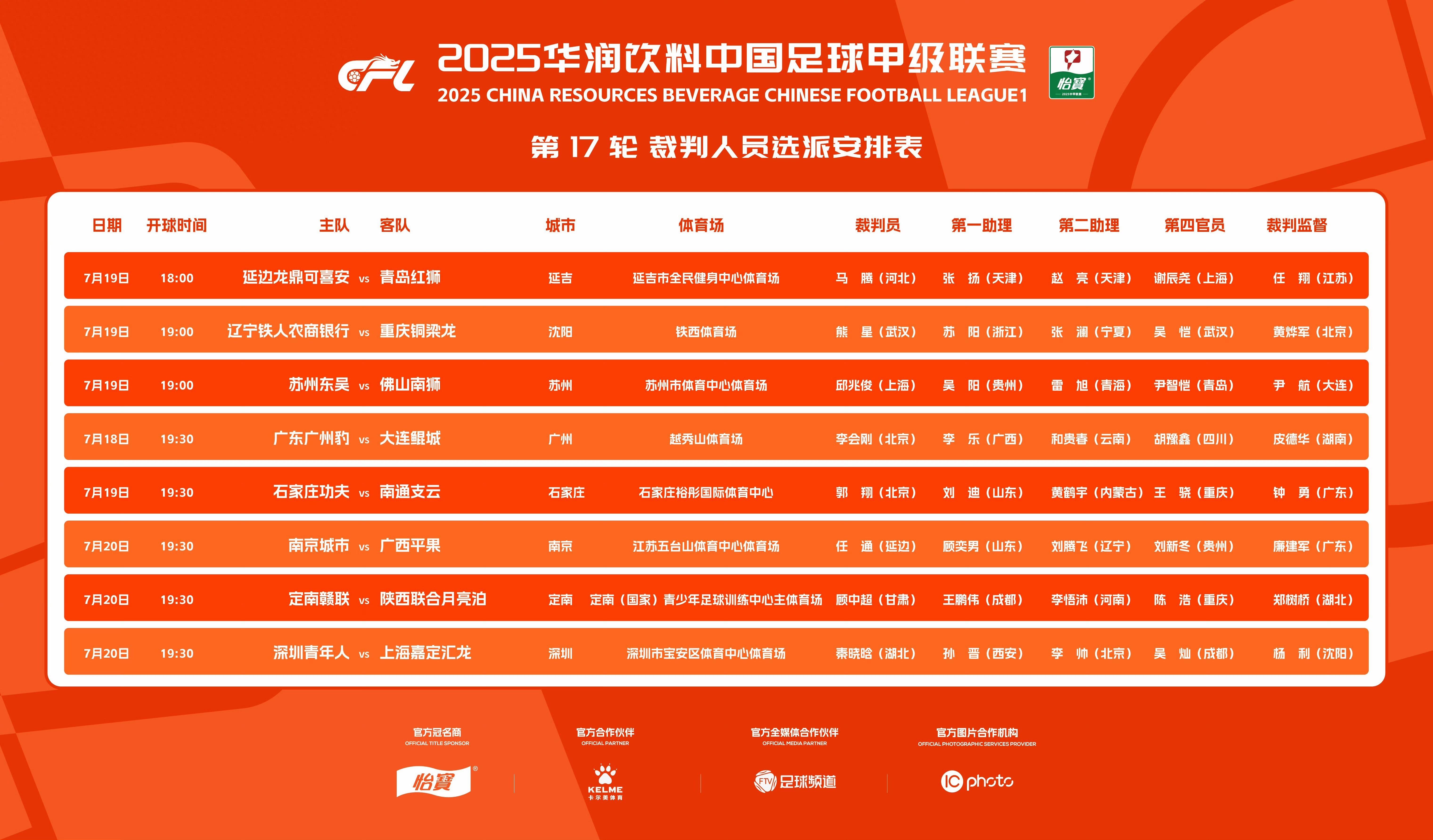 北京時間7月18日,中甲第17輪的裁判名單公佈,熊星執法榜首大戰遼寧鐵人vs重慶銅梁龍。