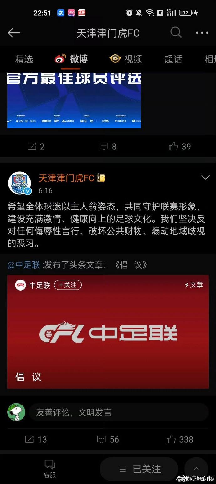 現在知道一些天津球迷的素質爲啥這麼差了,天津津門虎官方微博特意帶頭出來罵人。