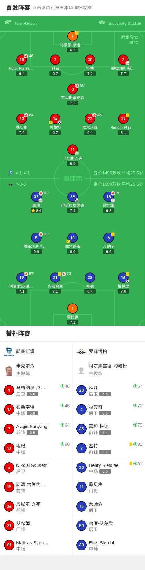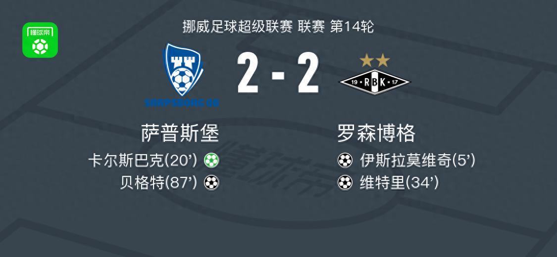 北京時間7月19日,挪威足球超級聯賽第14輪,薩普斯堡主場迎戰羅森博格。比賽開始後,羅森博格由伊斯拉莫維奇率先破門。隨後,薩普斯堡的卡爾斯巴克通過點球將比分扳平。上半場結束前,維特里爲羅森博格再次取得領先。比賽臨近尾聲,薩普斯堡由貝格特接應助攻打入關鍵一球,最終雙方以2比2握手言和。