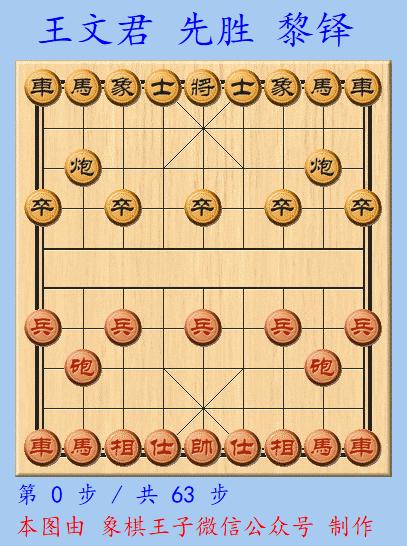 王文君一馬快入,撲向黑棋槽位,而後雙車策應,一車把黑老將與馬定於4路肋道,再平前車叫殺,63手鎖勝。