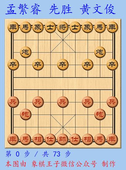 黑方在中盤的互纏中,車互捉炮時,沒有選擇交換,導致大虧,孟繁睿集結子力,全速進攻,以車馬炮攻入黑棋城內,黑士象被破,無險可守,紅棋73手奪勝。