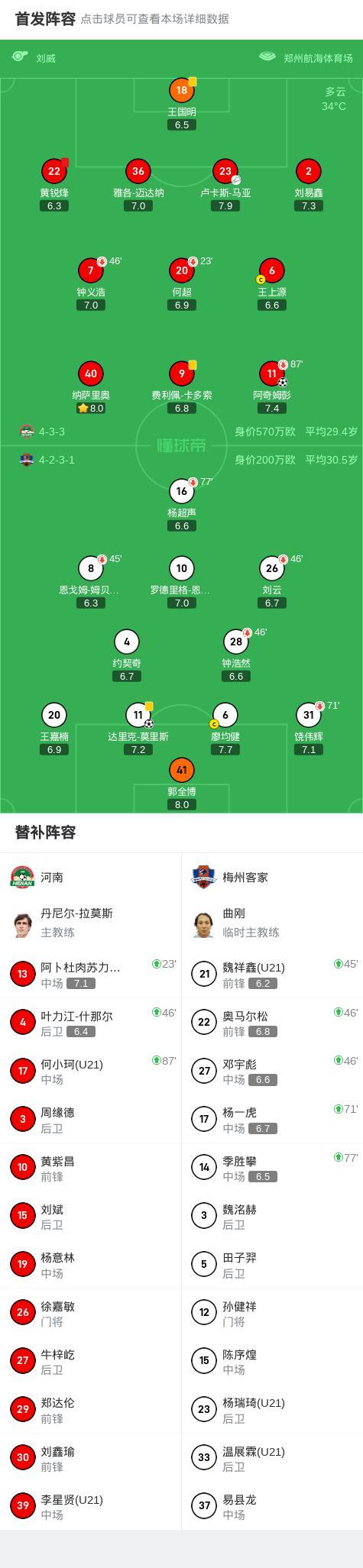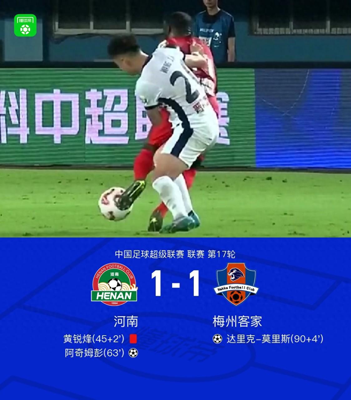 河南1-1梅州客家,阿奇姆彭破門,黃銳烽染紅,莫里斯絕平