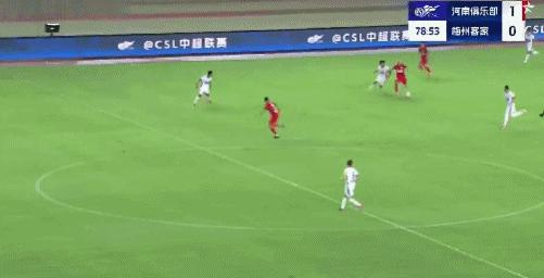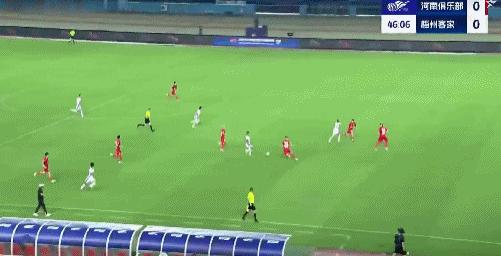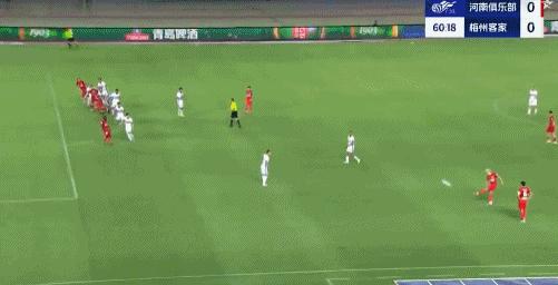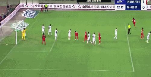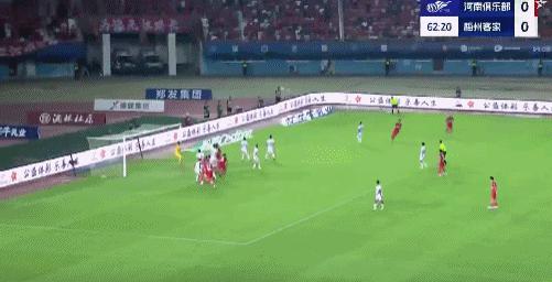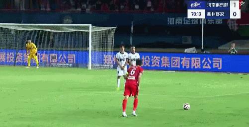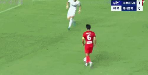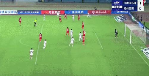 第63分鐘,阿奇姆彭禁區頭球頂空門破門,河南1-0梅州