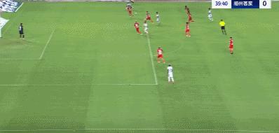 第40分鐘,王嘉楠禁區爆射打門,皮球沒有壓住