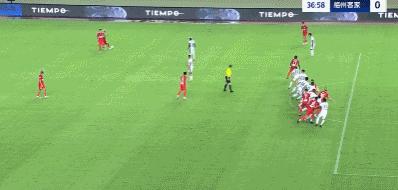 第31分鐘,卡多索禁區頭球攻門,郭全博撲出皮球