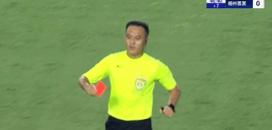 第45+1分鐘,黃銳烽蹬踏犯規,裁判觀看VAR出示紅牌將其罰下