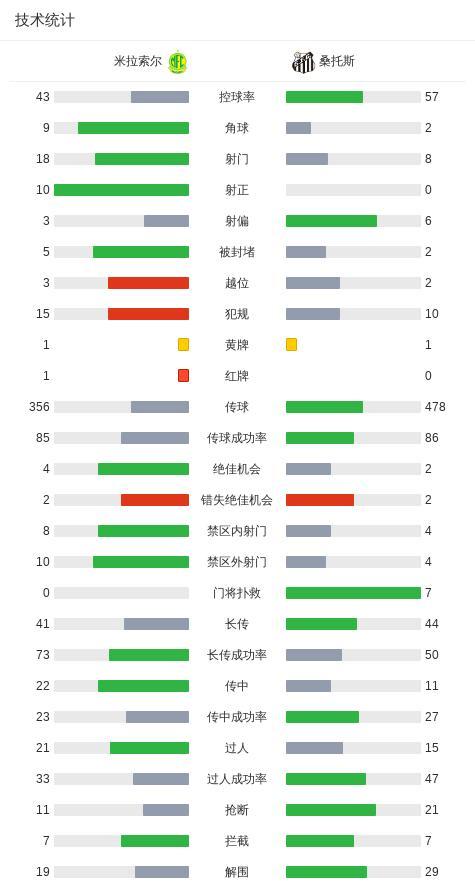 第39分鐘,米拉索爾角球開出,外圍嘗試一腳遠射被門將抱住