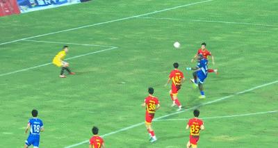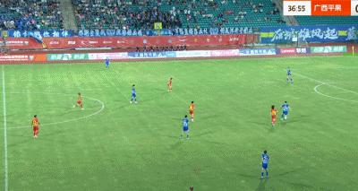 第38分鐘,齊雨熙出球超巨失誤,盧城河笑納大禮包,廣西平果1-0領先