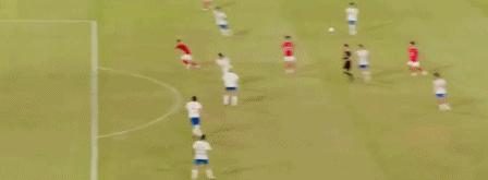 第45分鐘,曹涵智遠距離吊射,皮球稍稍偏出