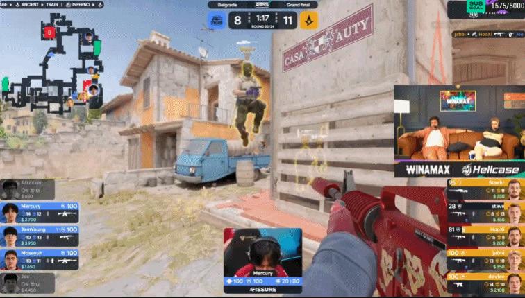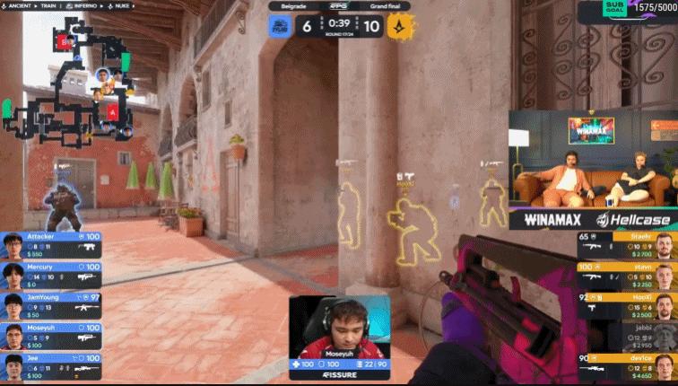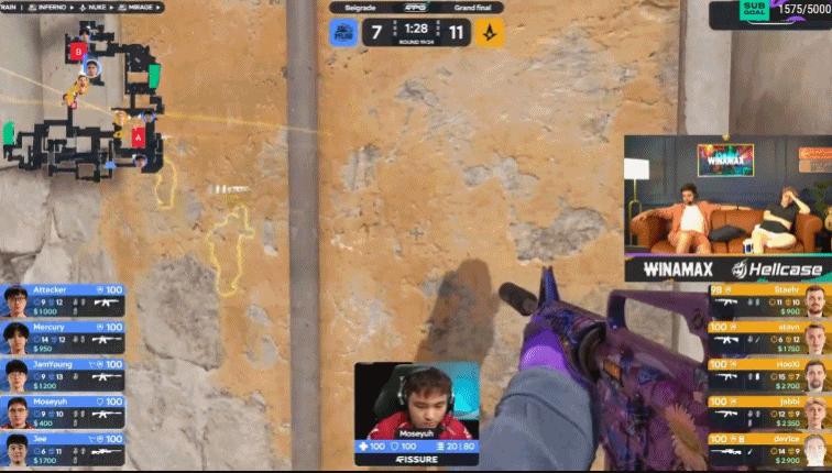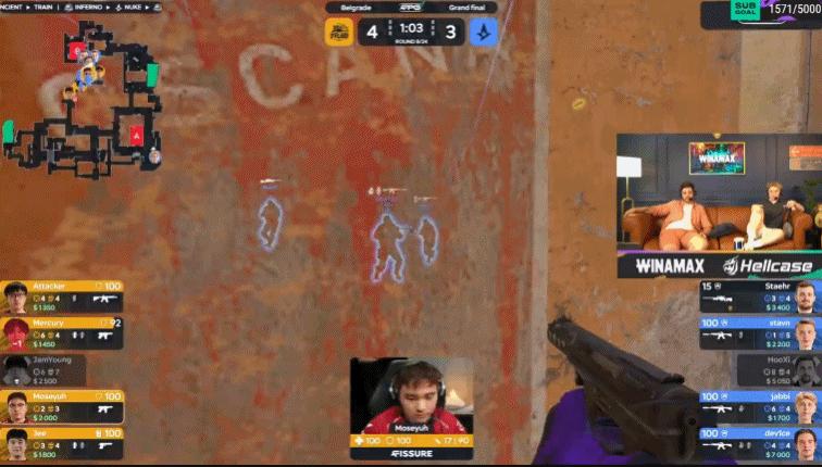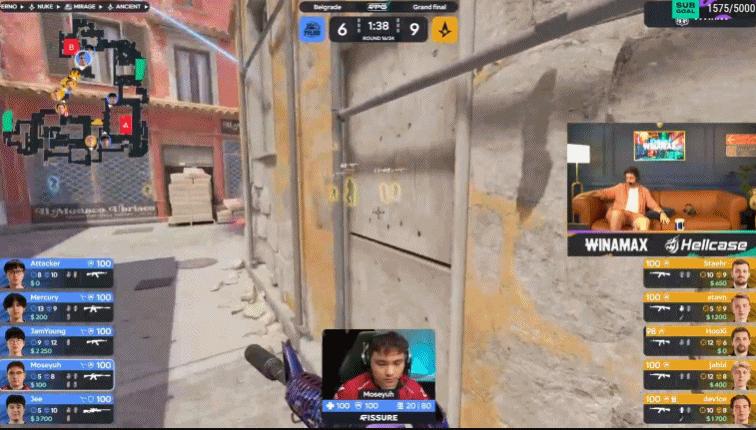 第17回合,天祿A二樓擺鋪,Jee大狙首殺,A隊只能幹摸連接,Moseyuh配合隊友打出四殺!7-10。