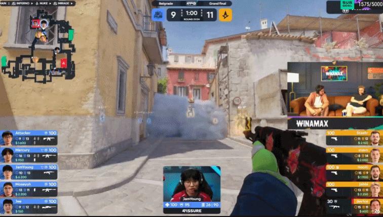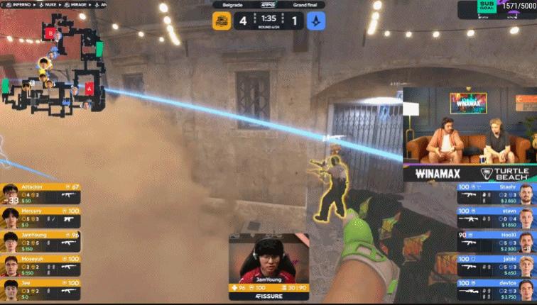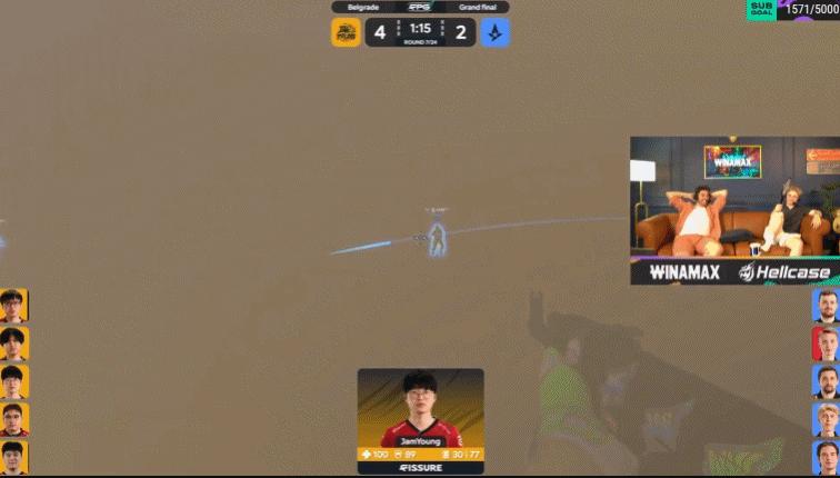第19回合,A隊快搶B想連接夾B,Jee連接大狙拿到人頭,B區反清也奏效雙殺,8-11。