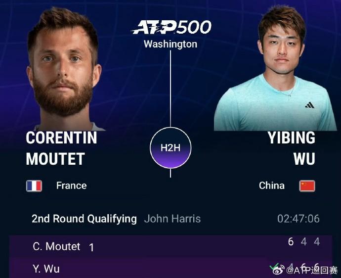 7月21日,ATP500華盛頓站資格賽決勝輪,中國選手吳易昺把握住第5個賽點,以2-1(4-6、6-4、6-4)逆轉頭號種子穆泰,本賽季首次戰勝TOP100球員。