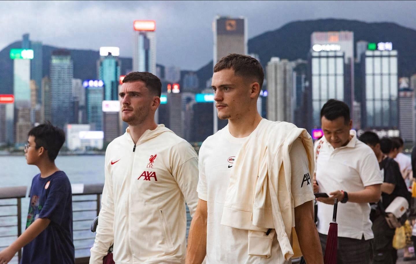 在酒店進行短暫的伸展運動後,球員們一同外出漫步,在利物浦官方曬出的照片可以看到,他們來到了維多利亞港著名的星光大道,遊覽城市的風光。