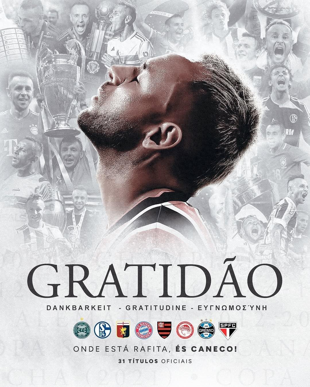 足球給予了我一切,它帶我去了德國,讓我成爲了歐冠冠軍、南美解放者杯冠軍、巴甲冠軍……它讓我結識了很多了不起的人,讓我實現了一直以來的最大夢想。我感謝庫裏蒂巴,是它在一開始爲我敞開了大門;感謝沙爾克04,它信任一個來自巴西的男孩;感謝拜仁,多年來它是我的家,我在那裏收穫了足球生涯的所有榮譽;感謝弗拉門戈,在那裏我在祖國達到了事業巔峯;感謝聖保羅,我心愛的球隊,在那裏我有機會爲俱樂部贏得一項前所未有的冠軍;也要感謝奧林匹亞科斯和格雷米奧!
