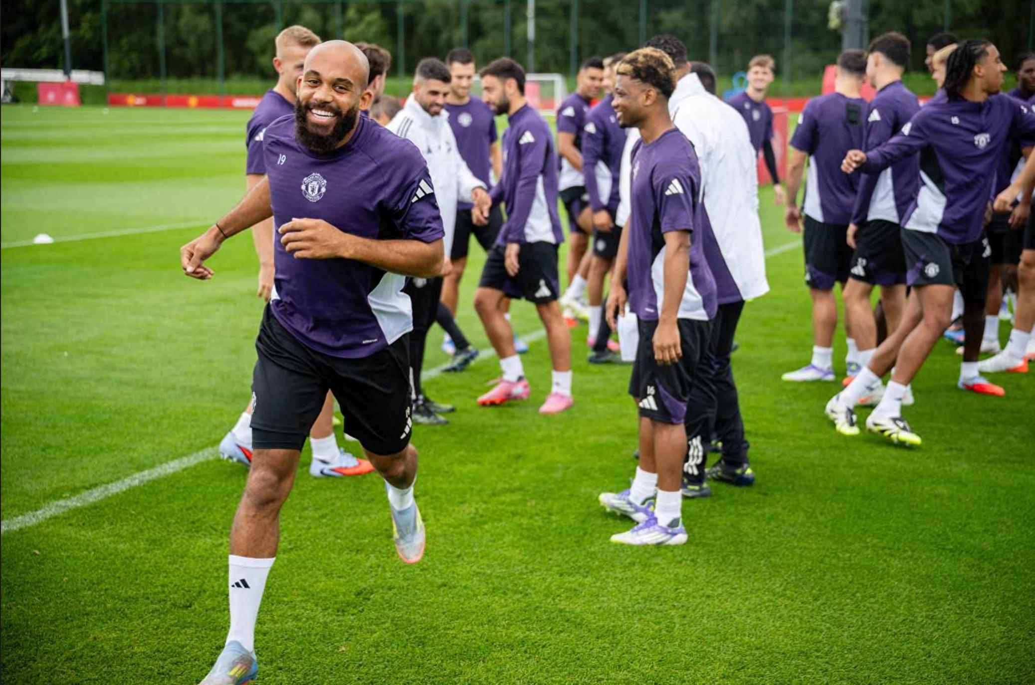 迪奧戈-達洛特率先來到訓練場,之後我們的新19號球員登場,他先是與阿馬德和萊尼-約羅交談。最初的球性練習,是他與阿馬德、約羅以及迭戈-萊昂進行了一小段時間的顛球。