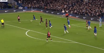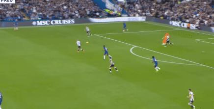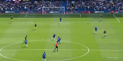 這個傳球很難停下來,儘管雅克松在與孔薩相撞後犯規,但他差點憑藉自己跑動的強度和在邊路的衝擊力爲切爾西提供了一條寶貴的出球路線。