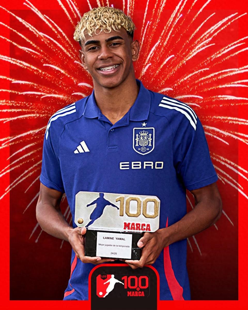 《馬卡報》對上賽季前100球員進行了點評,亞馬爾第一,登貝萊與維蒂尼亞位列二三。