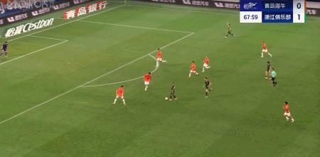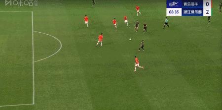 下半場傷停補時階段,米特里策憑藉個人能力單挑青島海牛防線,在第一腳打門被撲後,補射完成梅開二度。
