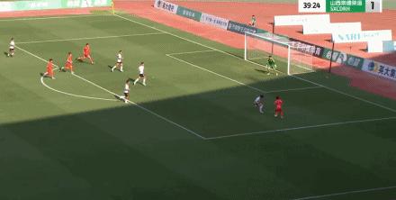 第17分鐘,何炳壯解圍失誤,龔正抓住機會破門,山西崇德榮海1-0!