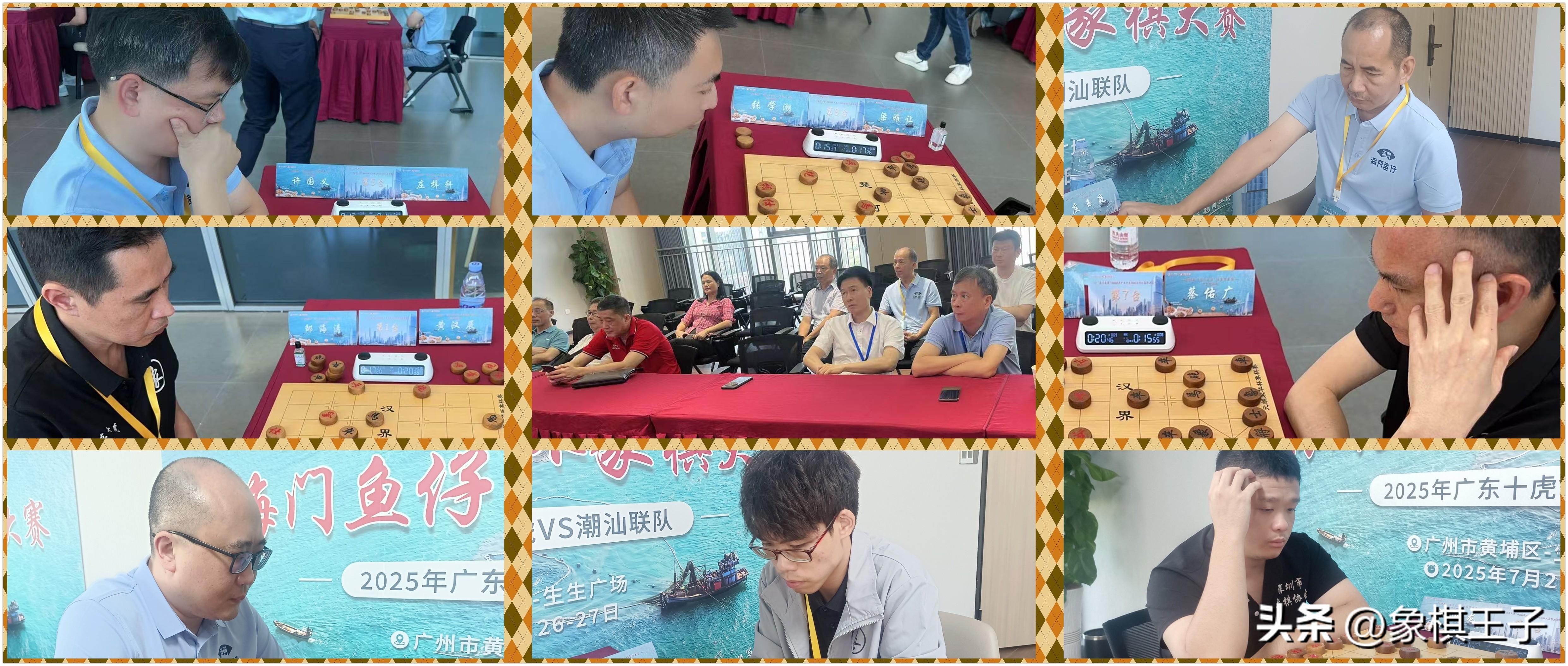 虎聯賽的大戰,巔峯搏鬥,2025年“海門魚仔杯”象棋團體對抗賽廣東十虎VS潮汕聯隊在廣州黃埔區生生廣場4幢13樓結束上半場五仗的戰程,首日廣東十虎隊以輪次分二勝一平二負,51比49,驚險領先潮汕聯隊2分,戰鬥十分緊張,廝殺慘烈。
