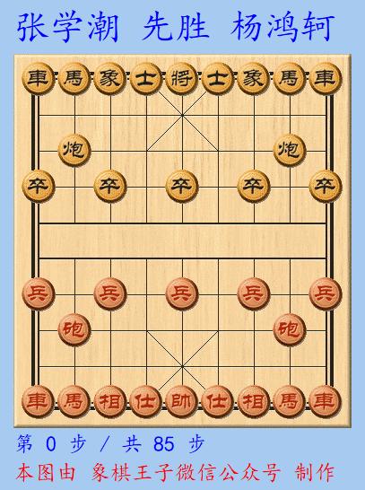 此後進入殘棋,紅馬炮三兵仕相全進攻黑方馬炮卒士象全,歷經苦鬥,張學潮兵連換黑士象,打入馬炮兵仕相全對馬炮光將勝出。