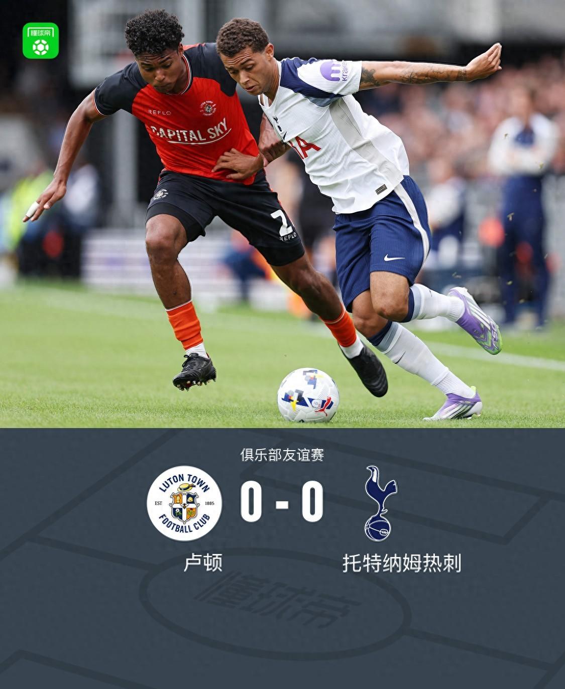 北京時間7月26日,英甲(第三級別)球隊盧頓與英超球隊托特納姆熱刺進行了一場友誼賽。雙方在比賽中都沒能攻破對手球門。全場比賽結束,雙方以0比0握手言和。