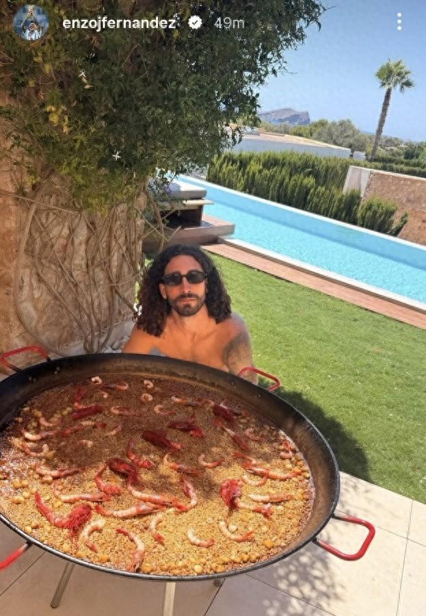 泳池派對,恩佐社媒曬出與庫庫雷利亞喫海鮮飯的照片