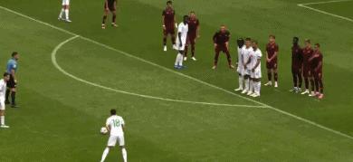 第34分鐘,蘇萊任意球攻門,皮球被撲出