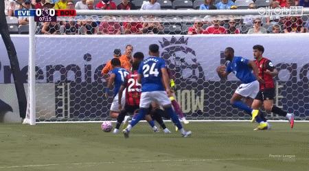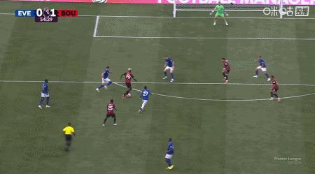 第55分鐘,比林內切破門打破場上僵局,伯恩茅斯1-0埃弗頓