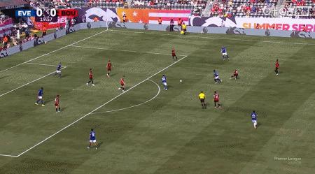 第33分鐘,布魯克斯外腳背傳中,皮克福德將球沒收