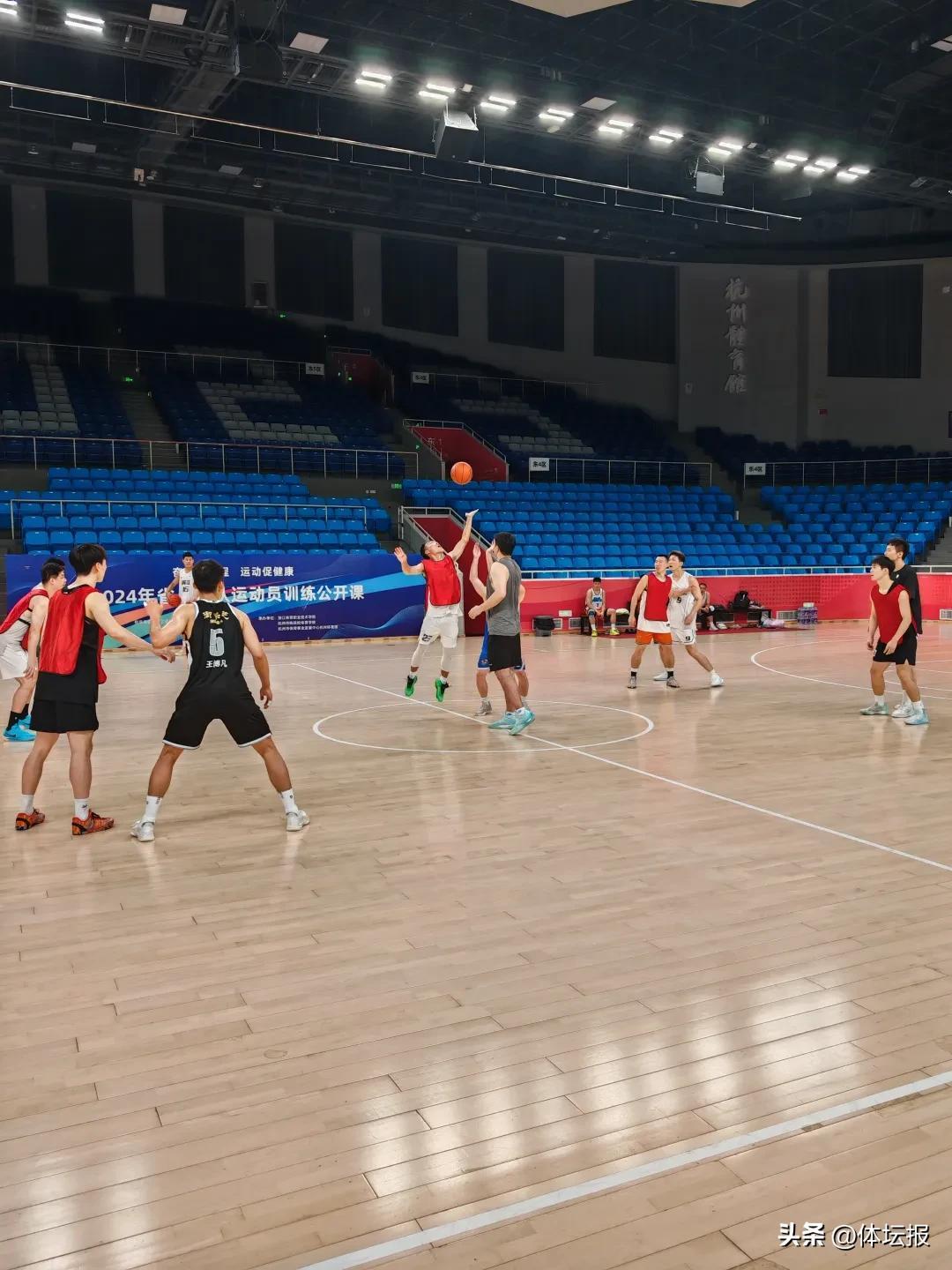 7月26日一早,在杭州市體育館,這些來自各隊的精英球員齊聚,正在積極訓練。從最基礎的熱身,到攻防演練、配合投籃,再到分組對抗比賽,在主教練於雙凱的帶領下,兩個多小時的訓練內容豐富且充實。