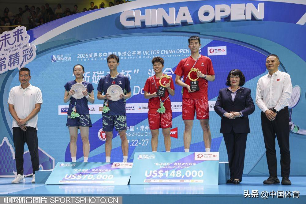 中國體育訊 7月27日,2025年中國羽毛球公開賽在常州奧體中心體育館展開收官日爭奪。在混雙決賽中,中國組合馮彥哲/黃東萍2比0戰勝隊友蔣振邦/魏雅欣,獲得冠軍。(中國體育圖片 張昕 攝)