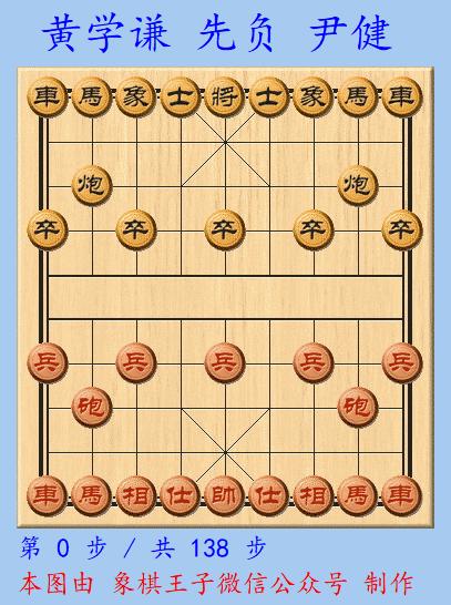 黃尹的冠軍之鬥,黃學謙以預賽第一之風,執先擺出仙人指路陣,尹健應以左中炮,佈局兩人快速出動大子,拉開陣勢,很快進入到中盤的戰鬥。