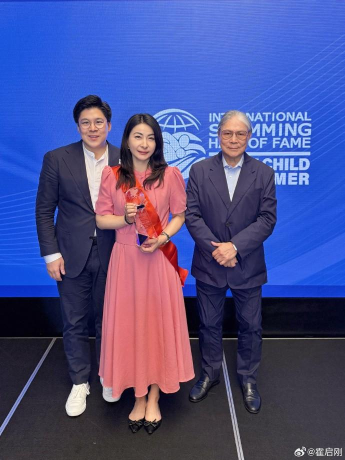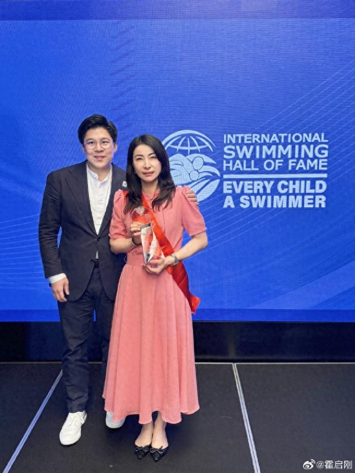 霍啓剛發文:晶晶2016年已經入選國際游泳名人堂,但當年因爲行程原因未能到現場領獎,今年名人堂特意補頒獎項。