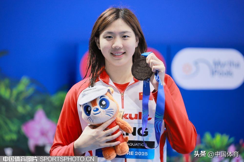 中國體育訊 當地時間7月29日,2025年世界游泳錦標賽游泳女子100米蛙泳決賽在新加坡體育城世錦賽游泳館舉行,亞洲紀錄保持者、中國選手唐錢婷以1分05秒64的成績奪得銅牌。(中國體育圖片特派記者 鹿麟 攝)