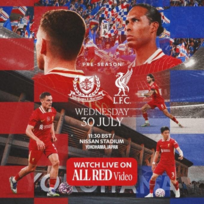 橫濱水手vs利物浦的比賽將於北京時間7月30日18:30開打。