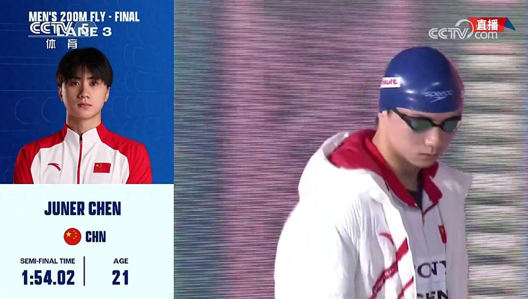 7月30日,2025世界泳聯世錦賽男子200米蝶泳決賽,中國選手陳俊兒游出1分55秒25,最終排名第7。