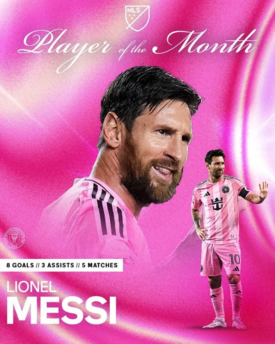 官方消息,梅西當選美職聯7月最佳球員。