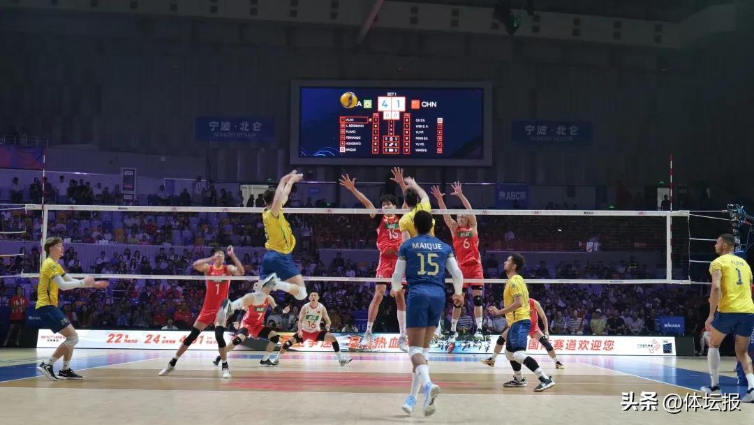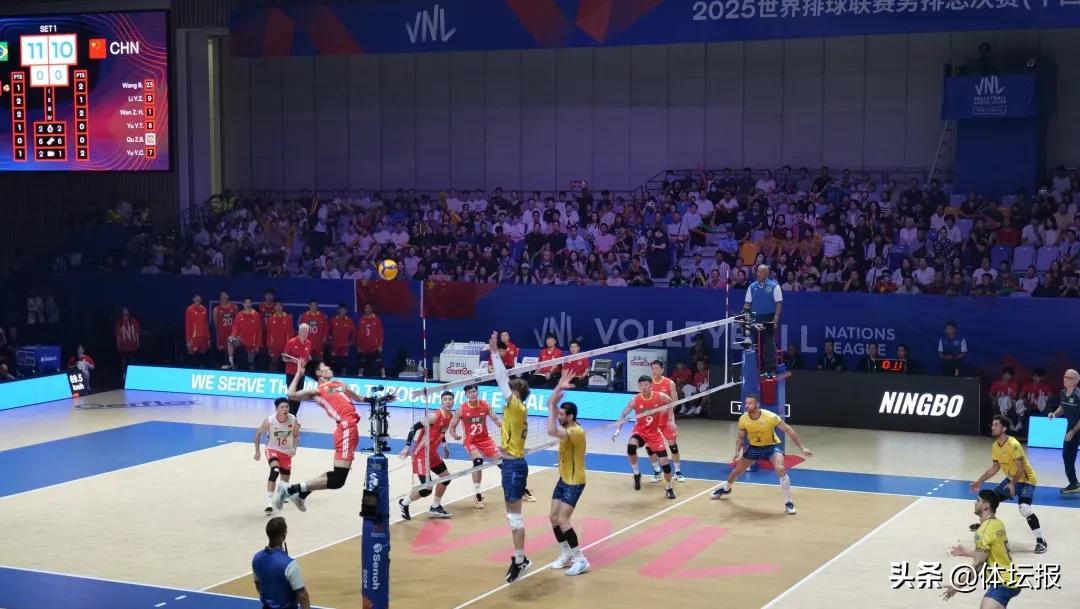 7月30日晚,2025年世界男排聯賽(VNL)總決賽四分之一決賽在寧波北侖體藝中心舉行,東道主中國男排與巴西男排展開激烈較量。最終,中國男排以1-3(31-29、19-25、16-25、21-25)不敵世界排名第四的巴西隊,止步八強。
