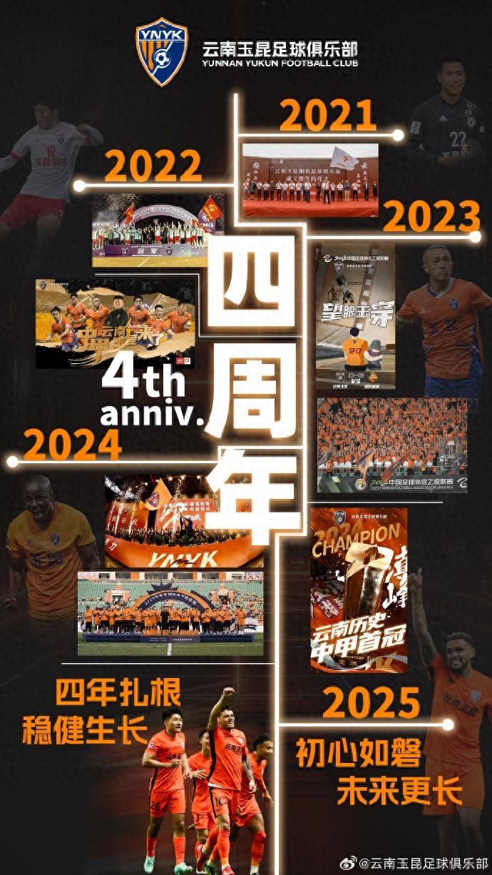 7月31日,雲南玉昆迎來了成立四週年的生日,俱樂部發布了紀念海報。