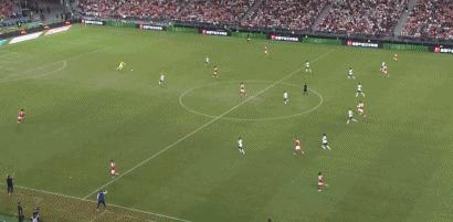 第8分鐘,賴斯分球,哈弗茨禁區內拿球調整打門被沒收