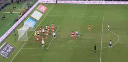 第4分鐘,薩利巴門前甩頭攻門,皮球偏出立柱