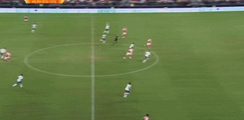 第45+1分鐘,第45分鐘,薩爾搶斷後遠距離吊射破門!熱刺1-0領先阿森納!