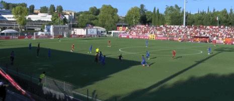 第56分鐘,戛納球員單刀射門,皮球被羅馬門將擋出