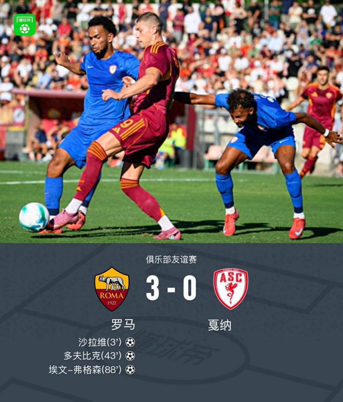 羅馬3-0戛納,沙拉維傳射建功,多夫比克、埃文-弗格森破門