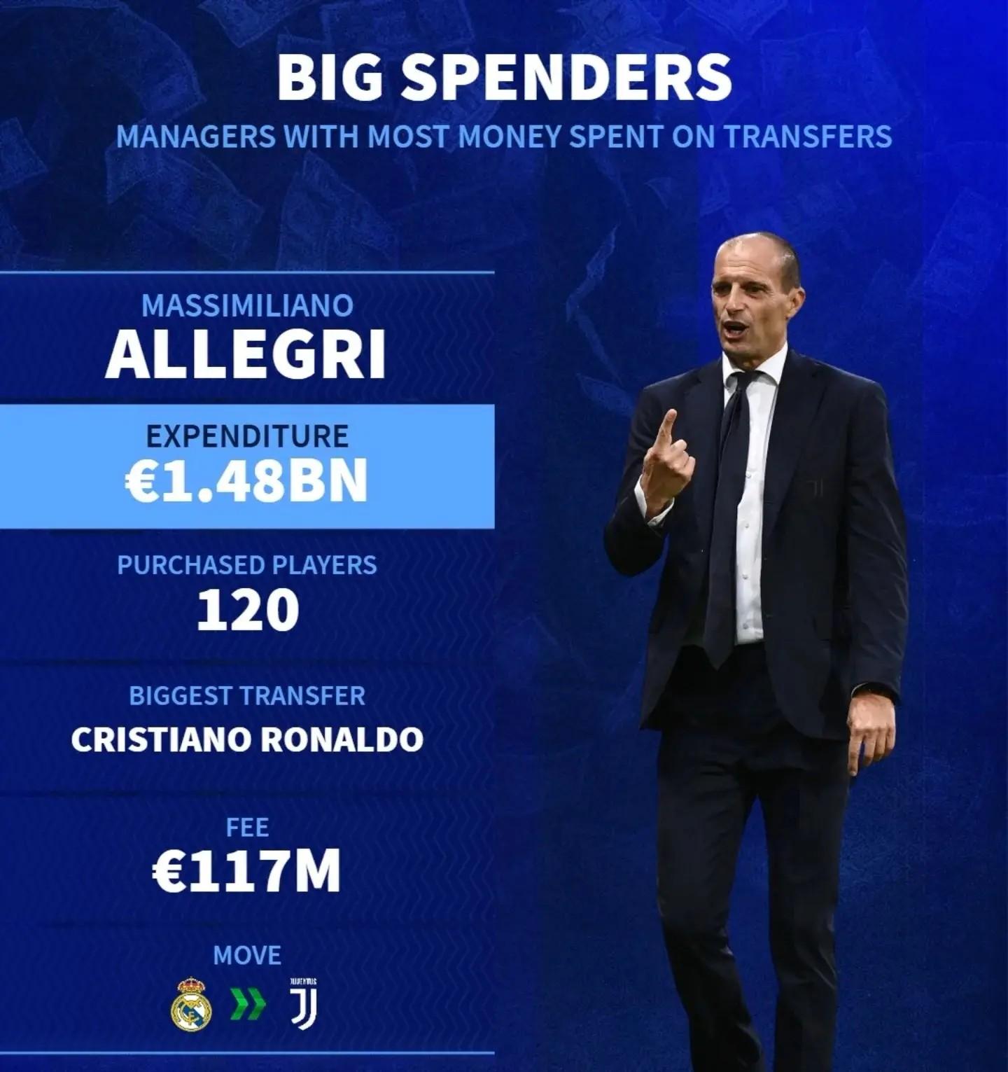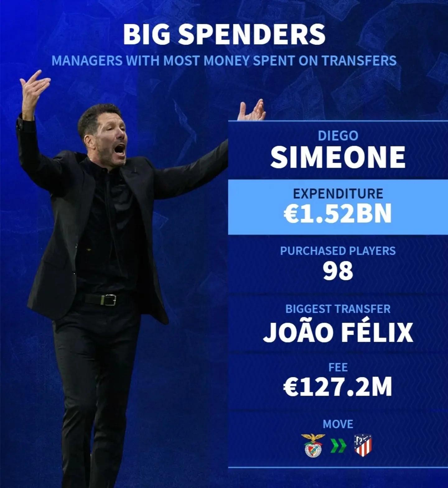 德轉統計主教練引援花費TOP5: